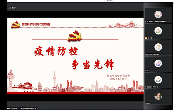 2022年4月25日12时,成人导航 学生党支部于线上召开第四十九期马列小组学习座谈会,本次会议主题为“疫情防控,争当先锋”。目前疫情防控已经进入了巩固成果的时期,长春市也已完成社会面清零的目标,但我们不能有丝毫懈怠,仍需时刻绷紧神经,用实际行动发挥党员先锋模范作用和党支部战斗堡垒作用,坚定信心、凝聚力量,扎实做好疫情防控各项工作,以最坚决的态度、最扎实的作风,打赢这场疫情防控阻击战。会上志...