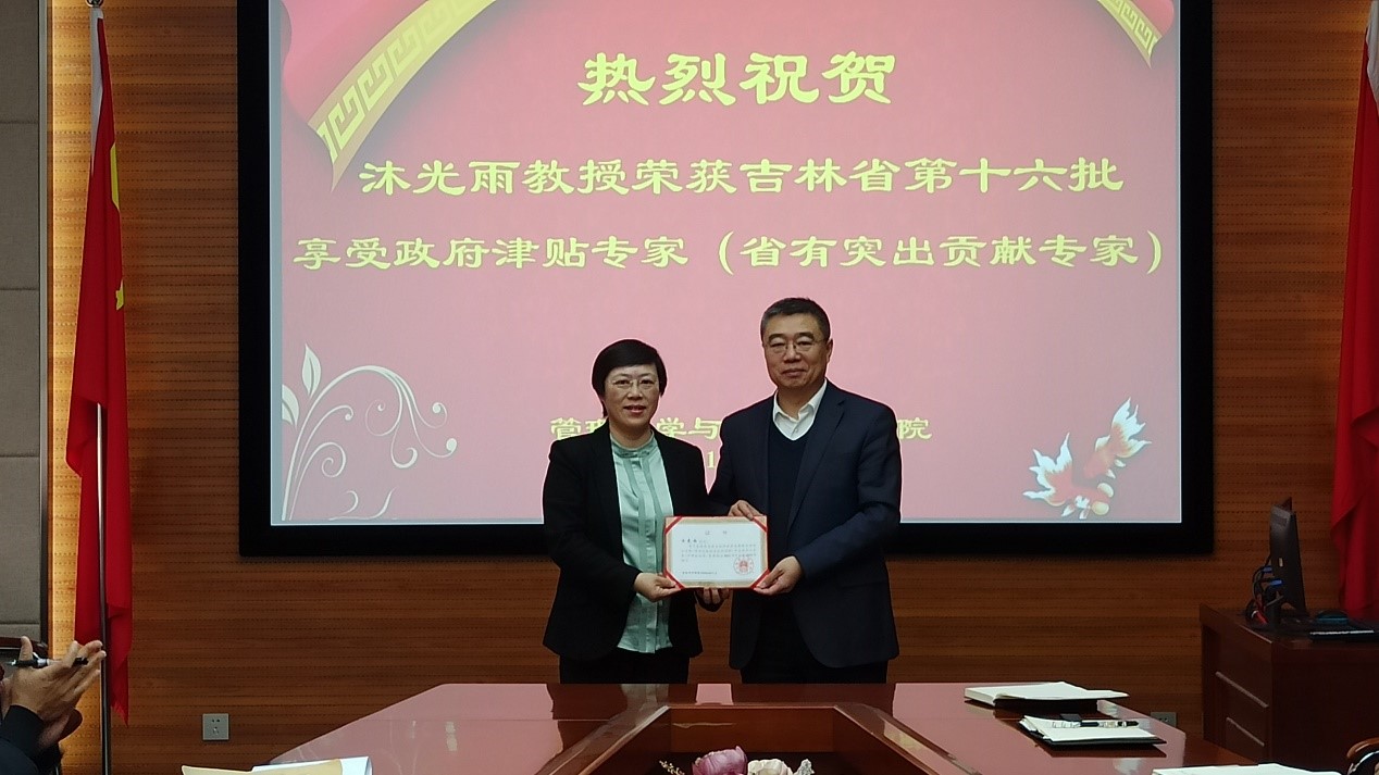 根据10月29日下发的吉人社函【2020】198号《关于公布吉林省第十六批享受政府津贴专家(省有突出贡献专家)人员名单的通知》,成人导航 沐光雨教授荣获吉林省第十六批享受政府津贴专家(省有突出贡献专家),校领导刘鹤亲自为沐光雨教授颁奖,学院党委书记曹景新对沐光雨教授取得的成绩予以祝贺,并鼓励学院教师向沐教授学习,为我校发展再立新功。(审核人 曹景新)