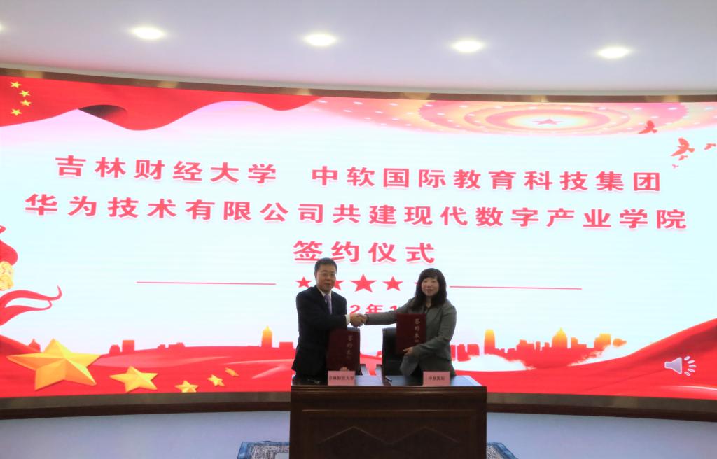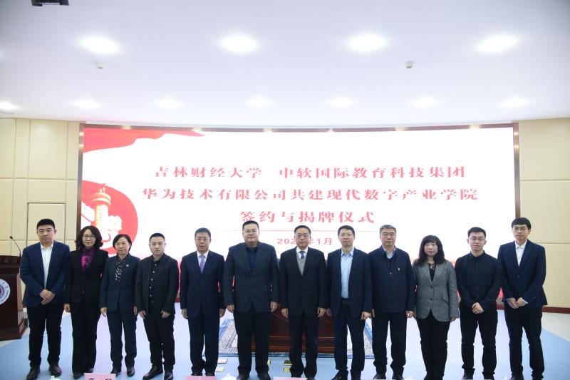 1月4日,新年伊始,我校和中软国际教育科技集团、华为技术有限公司共建现代数字产业学院签约揭牌仪式在学校1102报告厅举行。中软国际教育科技集团高级副总裁高滨、黑吉总经理赵丹、长春分公司信创部副总监张旺;华为技术有限公司吉林省总经理王辉、吉林省教育医疗业务部部长邹韫、吉林政企教育行业代表金沙亮、吉林省华为云业务部副部长谭政;我校党委书记孙杰光,党委副书记、校长童猛,党委副书记刘鹤,副校长王菁华,副校长马秀颖,学校相关党政职能部门负责人,各学院院长以及成人导航 教师代表出席了活动。仪式由副校长王菁华主持。