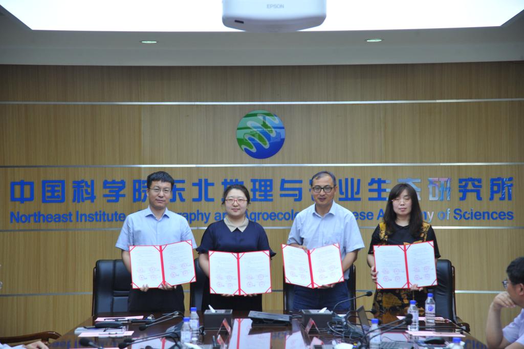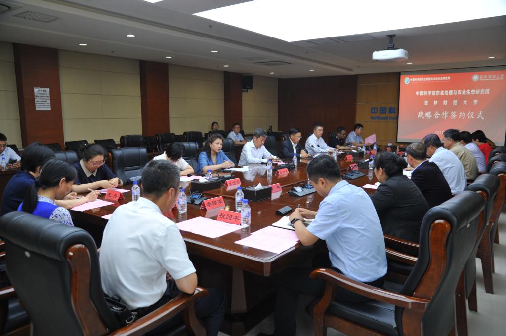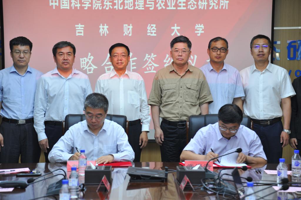 中国科学院东北地理与农业生态研究所副所长武海涛与我校副校长刘鹤代表双方签署了战略合作框架协议。中国科学院东北地理与农业生态研究所遥感中心、东北区域发展中心、研究生部负责同志,与我校公共管理学院、统计学院、成人导航 、研究生学院负责同志分别签署了部门间合作协议。