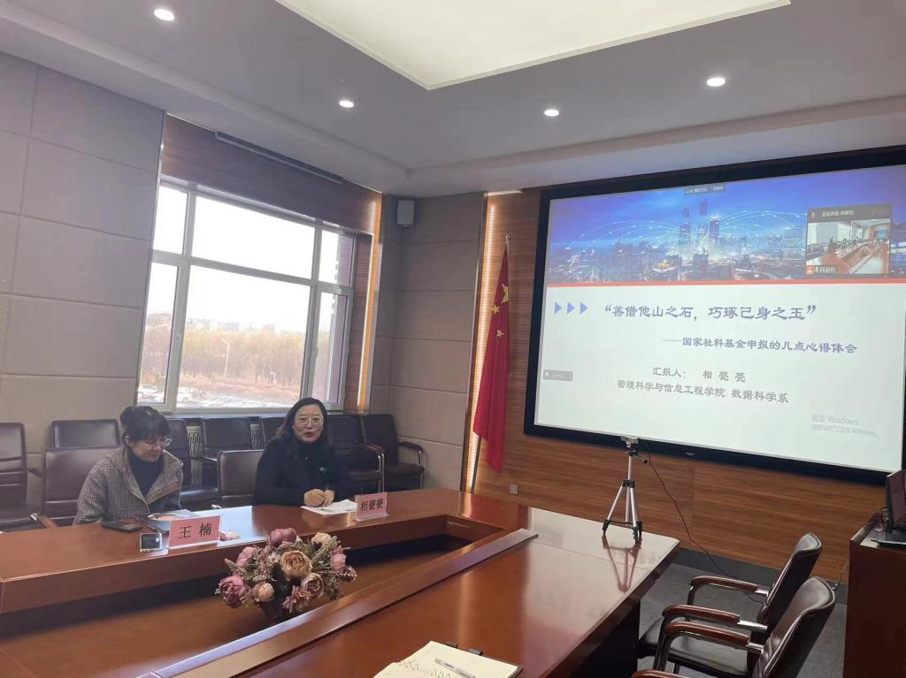 会议之初,科研处吕超老师简要介绍了学校“两金之星”学术论坛系列活动。历年来,学校十分重视国家“两金”项目的申报工作,为提高教师申报质量和论证水平,实现精准申报,学校组织了一系列的辅导活动。本期学术论坛的主旨就是邀请拥有成功经验的老师,就如何提升申报材料水平,分享经验、传授技巧。