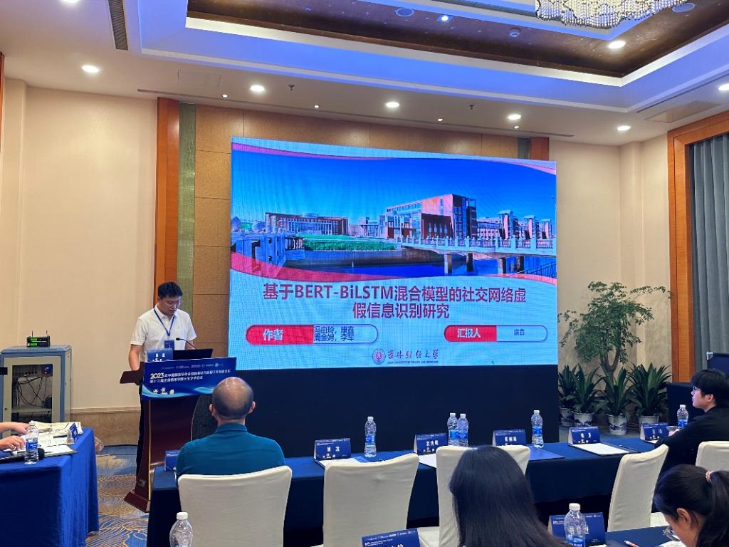 其中,21级图书情报专业研究生康鑫同学的论文《基于Bert-BiLSTM混合模型的社交网络虚假信息识别研究》在大会分论坛进行了宣讲,并被推荐至情报科学(CSSCI)期刊。其余参会论文分别进行了展板展示,多篇论文收到不同期刊的录取意向。