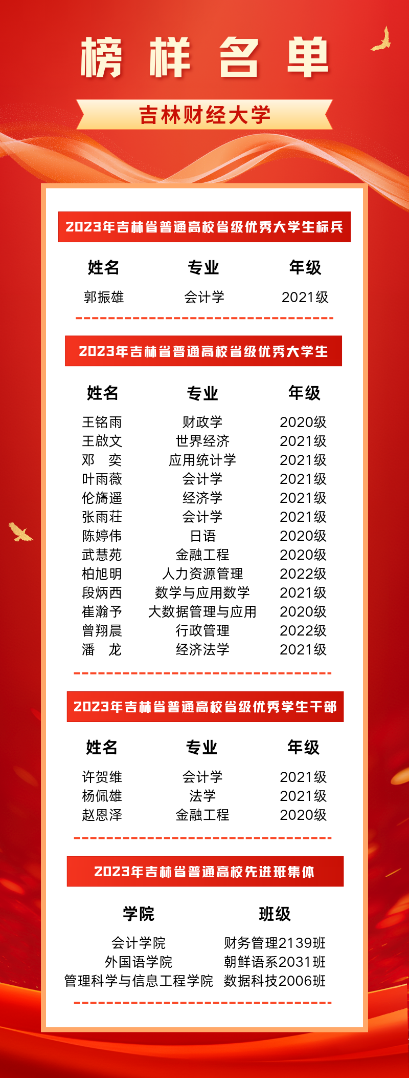 成人导航 深入学习贯彻习近平新时代中国特色社会主义思想和党的二十大精神,全面贯彻党的教育方针,坚持立德树人根本任务,勇担为党育人、为国育才使命,培养德智体美劳全面发展的社会主义建设者和接班人。经学院、学校积极申报,省选树工作领导小组审核、公示,吉林省教育厅确定,成人导航 数据管理2001班崔瀚予同学为“2023年吉林省普通高校省级优秀大学生”,成人导航 数据科技2006班为“2023年吉林省普通高校先进班集体”。