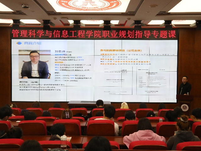 为帮助2021级学生准确把握当下学院各专业的就业形势,洞悉各大企业对人才的需求变化,帮助学生择业就业,成人导航 联合吉软数科(吉林)科技有限公司于4月11日在1202教室召开了职业规划指导专题讲座。主讲人是来自吉软数科的刘元喜总经理。