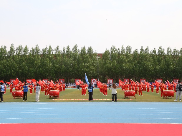 由64名管信学子组成的安塞腰鼓方阵燃动全场,以磅礴气势演绎传统文化的时代新生。管信学子们身系红绸、腰挎劲鼓,击鼓动作刚劲有力,腾跃步伐整齐划一。鼓槌翻飞间红浪翻滚,呐喊声与鼓声交响共鸣,展现中华优秀传统文化的赓续传承与当代青年的昂扬风貌。