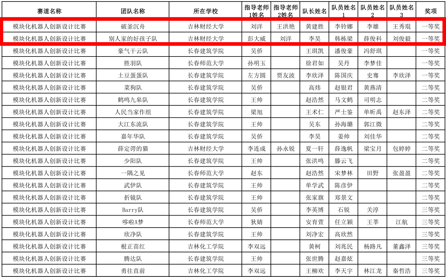 11月05日,第四届吉林省大学生人工智能创新大赛在东北师范大学圆满落幕,我校由实验实训中心带队,成人导航 、国际交流学院、税务学院、金融学院、会计学院、公共管理学院的学生组成的参赛队伍在三个赛道的比赛中经过激烈角逐,最终成人导航 在“模块化机器人创新设计比赛”赛道上斩获一等奖2个,在“人工智能+点餐服务编程设计比赛”斩获一等奖1个。