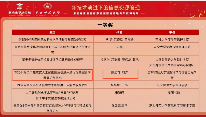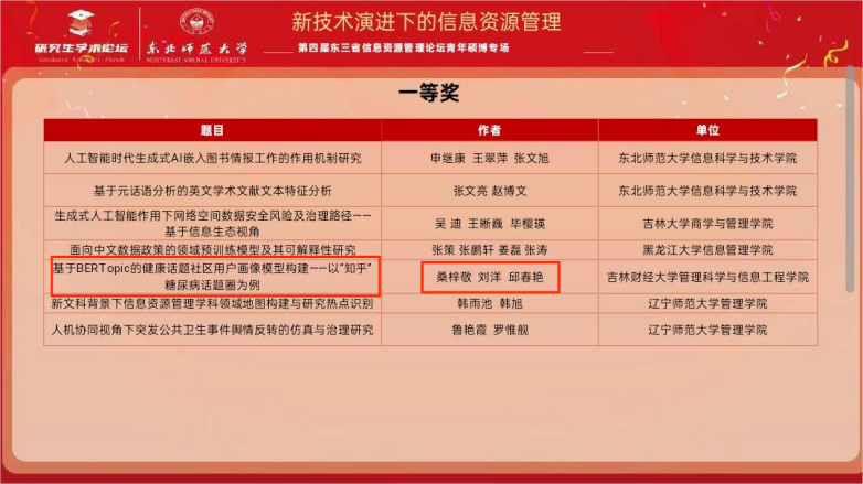 人才培养|成人导航 硕士研究生在第四届东三省信息资源管理论坛上发表报告并荣获一等奖