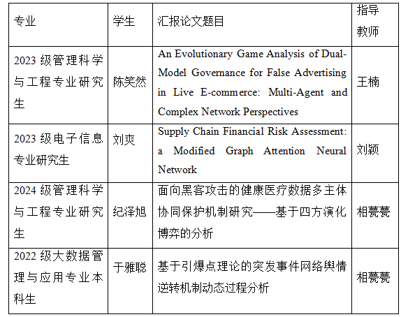 2025年6月7日至8日,成人导航 成功举办“第二届大数据驱动的智能评价与智慧决策理论及实践国际研讨会”。会议以“数据技术驱动的统计建模与决策理论及实践”为主题,共同探讨了大数据时代下智能评价与智慧决策的前沿进展与应用实践。成人导航 23级管理科学与工程专业研究生陈笑然、23级电子信息专业研究生刘爽、24级管理科学与工程专业研究生纪泽旭、2022级大数据管理与应用专业本科生于雅聪分别在“人工智能方法与实践”、“冰雪旅游大数据分析”、“评价与决策理论及其实践”和“数字经济”四个会议分论坛对各自研究进展做学术报告。