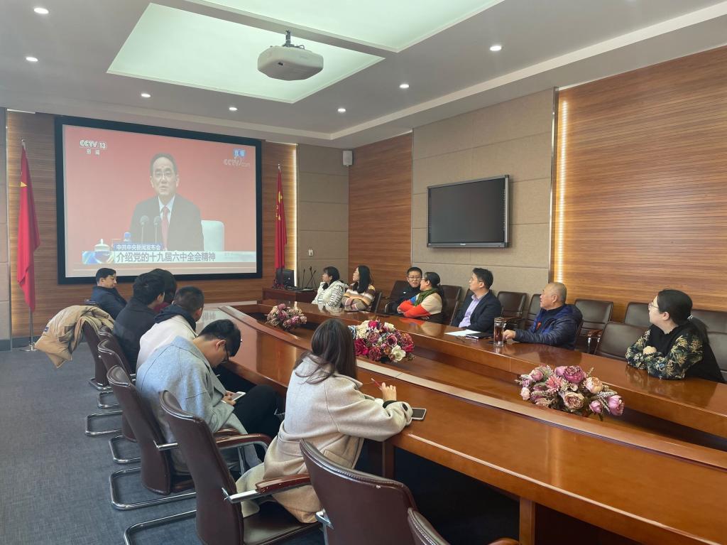 2021年11月12日, 成人导航 党委组织全体教职工收看了党的十九届六中全会新闻发布会。学院党委开放了207会议室安排在校教师党员和学生党员集中收看。同时,考虑到疫情管控的相关措施,部分教职工采取了线上收看的方式。