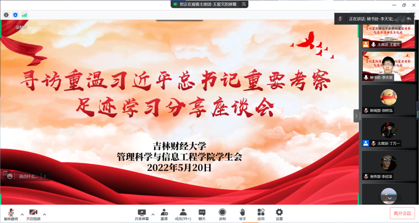 为学习贯彻习近平总书记关于教育工作和青年工作重要论述,引导青年身担时代重任,成人导航 团委于5月20日组织学生会全体成员和青马工程学员召开“寻访重温习近平总书记重要考察足迹”学习分享座谈会,由执行主席王爱文同学带领大家学习。本次座谈会分为重温“习近平总书记在北京师范大学考察”、“习近平总书记在北京大学考察”、“习近平总书记在中国人民大学考察”重要系列报道三部分,引发了同学们的热烈讨论和学习分享。