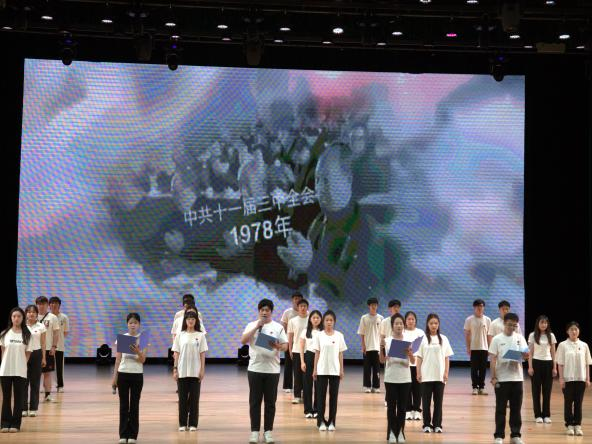 三:改革开放和社会主义现代化建设新时期。在《奋进新时代》这一节目中,同学们通过朗诵及合唱的形式,以满腔的热血和激情赞颂了改革开放以来祖国所取得的辉煌成就。中国人民始终团结一心,勇往直前。一部感人至深的情景剧《追忆2008》生动再现了汶川地震期间抗震救灾的壮丽景象。该剧通过精心编排的剧情和深入人心的角色塑造,将中国人民在灾难面前凝心聚力、砥砺前行的精神风貌展现得淋漓尽致。