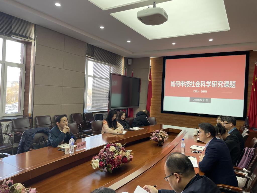 2021年12月1日,吉林省社科规划办副主任张林祥教授应邀来成人导航 作《如何申报社会科学研究课题》专题讲座。讲座由姜建华副院长主持,韩佳伶副院长、孙铁铮副院长、部分系主任、副主任等学科建设骨干以及学院新晋青年教师参加了本次讲座。
