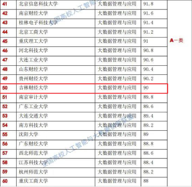 大数据管理与应用本科专业获评A-类专业。“A类”表示大数据管理与应用专业教育教学综合实力总体水平位居全国开办高校第一梯队。