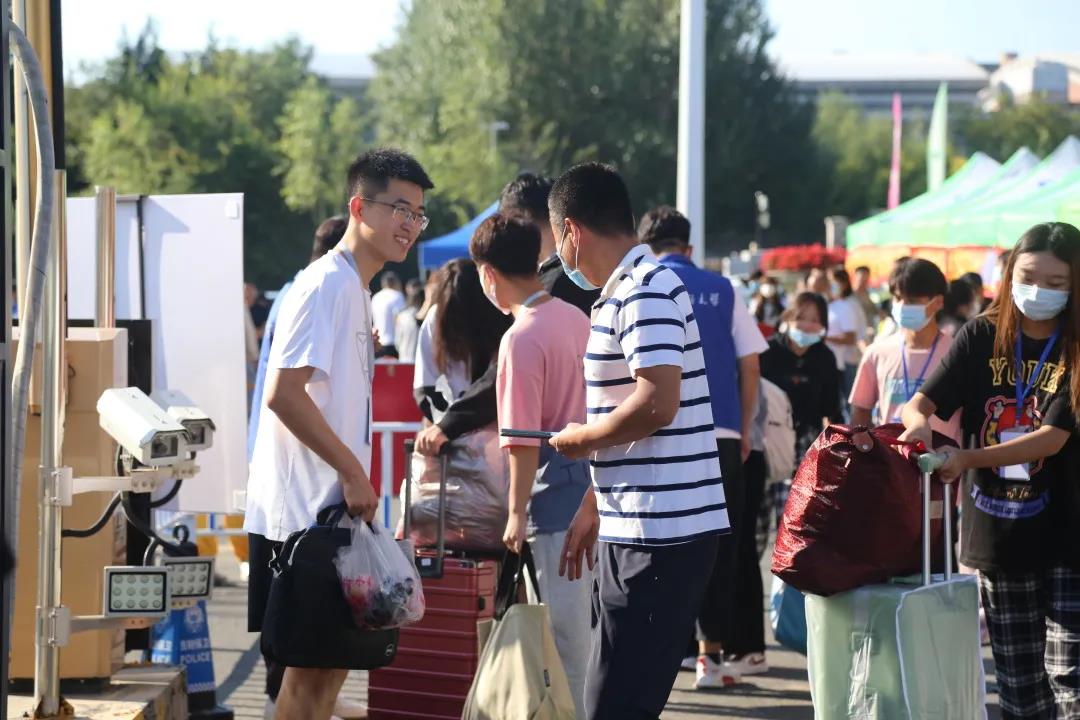 在迎新的过程中,有一名同学在搬运行李的过程中丢失了一件行李,我们的志愿者往返多次,最终在小推车上找到了他的行李。烈日炎炎下,虽然汗水浸湿了他们的衣衫,但他们的脸上始终洋溢着笑容。更有一些高年级的学生和刚到校的新生主动请缨,前来帮忙。不少志愿者,在帮助新生搬运完行李之后,还带领新生们到大学生活动中心做核酸检测,进行信息采集,带领他们熟悉校园。正是因为志愿者们的辛勤付出,迎新工作才得以顺利开展。