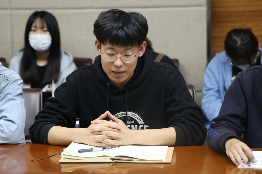 丁方一学长表示:在看了抗美援朝的相关视频后,让他印象特别深刻的是一名老兵的话。他说:“什么是祖国?当我们跨过鸭绿江,看到战火时,我们的背后就是祖国。”所以,身处和平年代的我们不能忘,不敢忘。举办团课、定期展开党史学习会都是在告诉我们,一定要学习、传承中华民族的伟大精神,发扬吃苦耐劳、团结互助和国家利益高于一切的精神,成为一名优秀的新青年。
