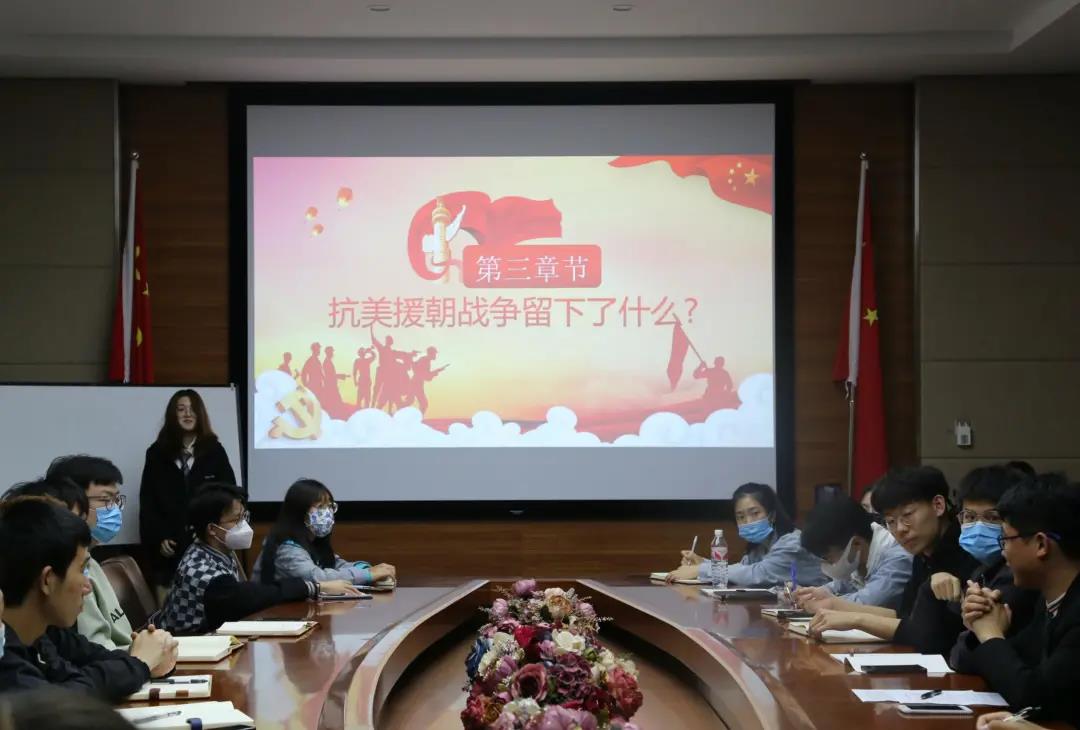 本次会议围绕“抗美援朝精神”的主题展开,由于诗楠同学主持并由三位同学与大家分享抗美援朝精神的详细内容及其背后的故事。