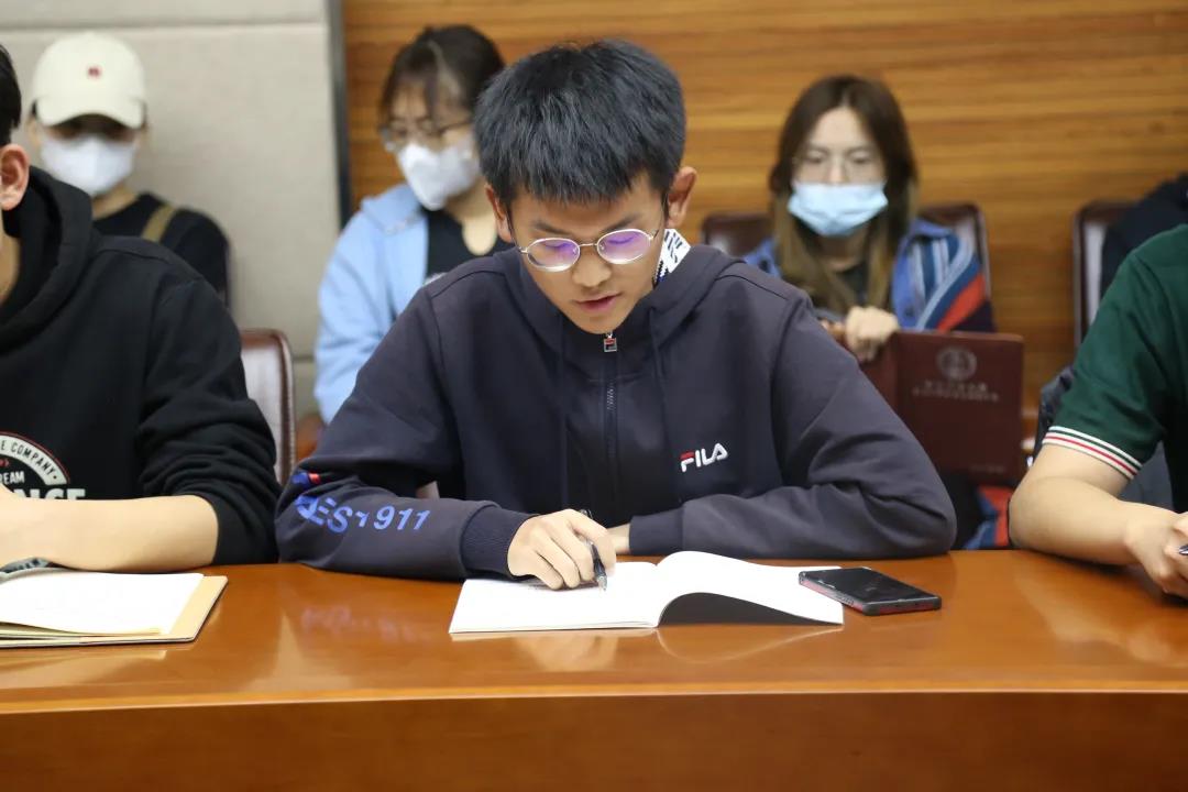 裴弼赢老师为本次讲谈会做了总结:裴老师先是向我们推荐了《跨过鸭绿江》这部电视剧。《跨过鸭绿江》首次以国际视野全景式呈现了抗美援朝战争全过程,从中央决策、志愿军将领指挥到志愿军战士无数次血战,再现了70年前那段波澜壮阔的历史,高度还原了70年前那群“最可爱的人”可歌可泣的英雄事迹。希望同学们多观看此类题材的影视剧,充实自己闲暇时光的同时也能够了解历史。随后,裴老师表示弘扬抗美援朝精神,新时代青年不仅要厚植爱国主义情怀,也要树立英雄主义理想。总书记强调:“当代中国,爱国主义的本质就是要坚持爱国和爱党、爱社会主义高度统一”,青年学子要深刻理解把握爱国主义的本质,忠于党、忠于国家、忠于人民,在党史学习教育中汲取砥砺奋进的力量,迸发新时代爱国主义伟力。抗美援朝战争中涌现的英雄人物众多,在成为英雄之前他们也曾是志愿军中普通的一员,正是因为具有英雄主义精神的平凡人在特殊环境下做出非凡举动才成为了英雄。因此,英雄与平凡从来不是对立的。生长在和平年代的我们没有经历过战场的硝烟,但是当中国特色社会主义进入新时代,当民族复兴重任的接力棒传递到我们手中的时候,平凡的我们非常需要英雄之志。因此,青年学子要树立英雄主义理想,把个人理想融入时代主题,在崇尚英雄、学习英雄的同时,争做平凡英雄。