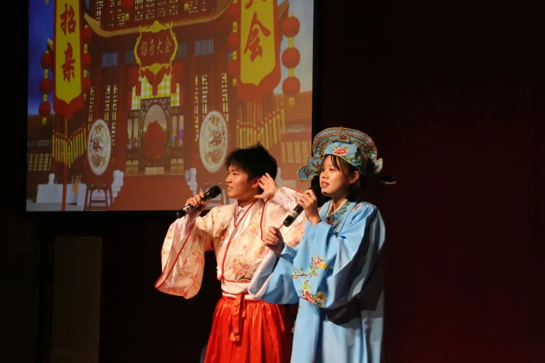 苏宇航、吕品、崔露檬、成傲蕾、黄雅婷、赵高杰同学表演了舞台剧《a Chinese Odyssey》。陈欣然、杨星源、李昕悦、盛景威、陈春吉、赵丁同学给我们带来舞台剧《play just》。选手们致敬经典,口语表达流畅,肢体语言丰富。惊人的舞台表现力赢得了阵阵掌声。