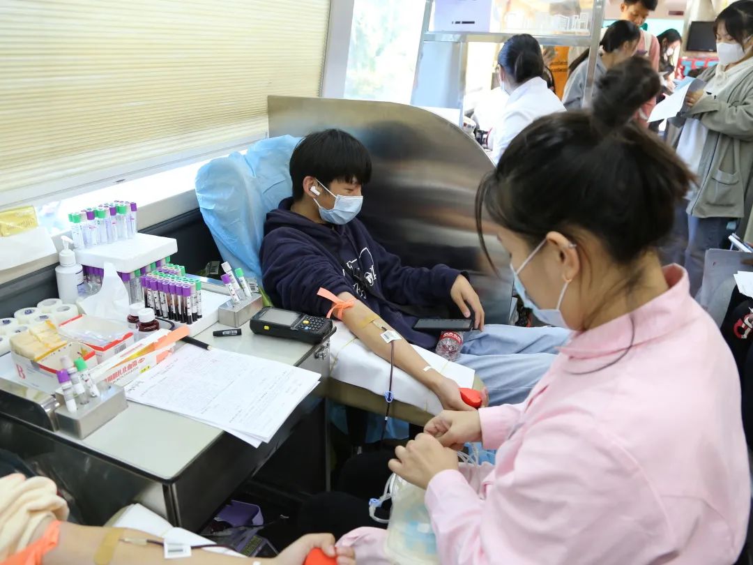 动员献血的通知一经发出,便得到了管信学子的积极响应。献血车前瞬间排起长队,现场井然有序,献血工作也在顺利进行。特别的是,一些晕血、晕针的同学,克服心理、生理上的阻碍,也勇敢地站在献血的队伍中,为社会中需要的人贡献独属于管信的一份力量。
