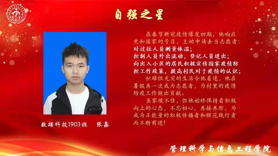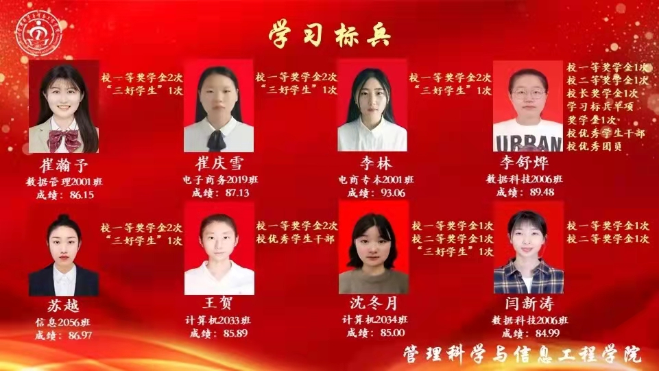 勤学笃志,在攀登书山的过程中,管信青年学子用勤奋战胜自我,在上一学年中涌现出了一批学习标兵。副院长孙铁铮老师宣读了学院关于对2020-2021学年学习标兵的表彰决定。