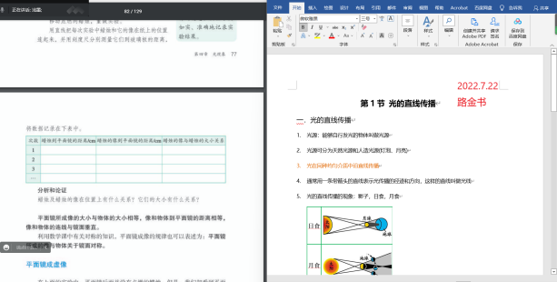 我主要负责学生的物理教学,我们用线上视频会议开展授课。在开课前我和另一个小伙伴商量着教学内容如何分配,在课堂中增加怎么样的内容不会觉得枯燥乏味,以及我们应该如何更好地让学生理解课程内容和更加积极踊跃的参加到互动当中等。每节课学生都很主动,早早的进入课堂,我先是利用做好的课件进行讲解,在讲解的过程中也会提出一些简单有趣的题目,让学生回答,和学生开麦进行讨论和交流,每天课后我都会及时对当天课程的情况进行总结,然后再对第二天的课程进行备课,活动开展得非常顺利,学生非常积极、主动地配合我的工作,考虑到学生的课后复习,我就把当前章节所讲的PPT发给学生,这样学生就可以再次翻看PPT及时巩固不熟的知识点和解决上课没有听懂的知识点,学生基本掌握了上课内容,课上练习都做得非常认真,而且也认真完成课后练习,不懂就及时提出问题。