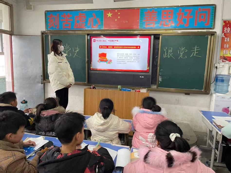 孩子们很热心,很可爱,也对我这个新老师很热情好奇,放学后会问我一些小问题。我所支教的班级是五年级,他们已经有自己的思维方式了,学党史对于每一个中国人来说都是至关重要的。