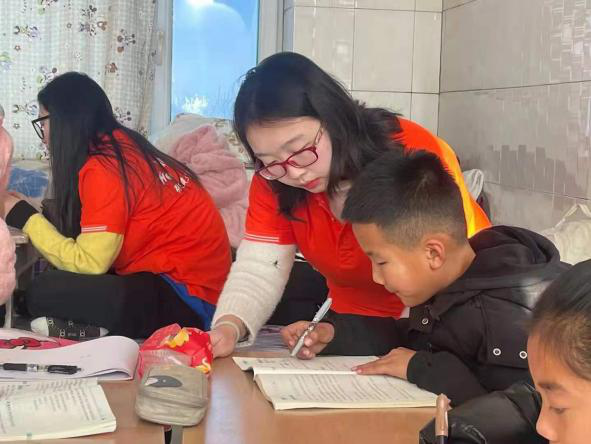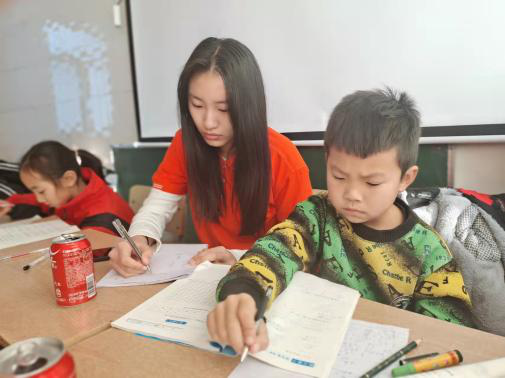 背上行囊,来到陌生的大湾村,王慧同学用真情实感和实际行动践行了奉献精神,帮助孩子们夯实基础,助学生们短时间高效地完成学习任务,鼓励孩子们,激发他们的学习热情,注重与孩子们的情感沟通,很快就融入其中。