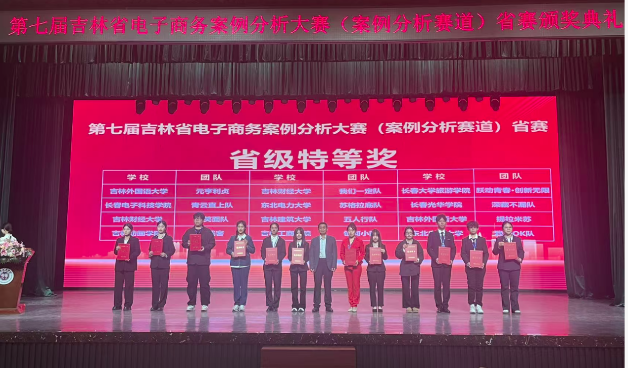 近日,第六届吉林省电子商务案例分析大赛(案例分析赛道)省赛暨颁奖典礼在长春光华学院举行,我校选拔推荐的30支参赛队伍全部获奖,其中3支队伍荣获省级特等奖,4支队伍荣获省级一等奖,3支队伍荣获省级二等奖;20支队伍获省级三等奖