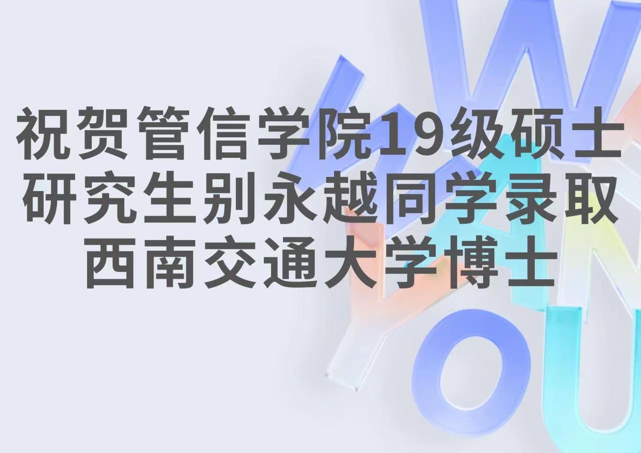 祝贺成人导航 2019级硕士研究生别永越同学录取西南交通大学博士!
