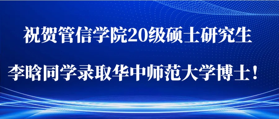 祝贺成人导航 20级图书情报专业硕士研究生李晗同学被录取为华中师范大学图书情报与档案管理专业博士研究生。