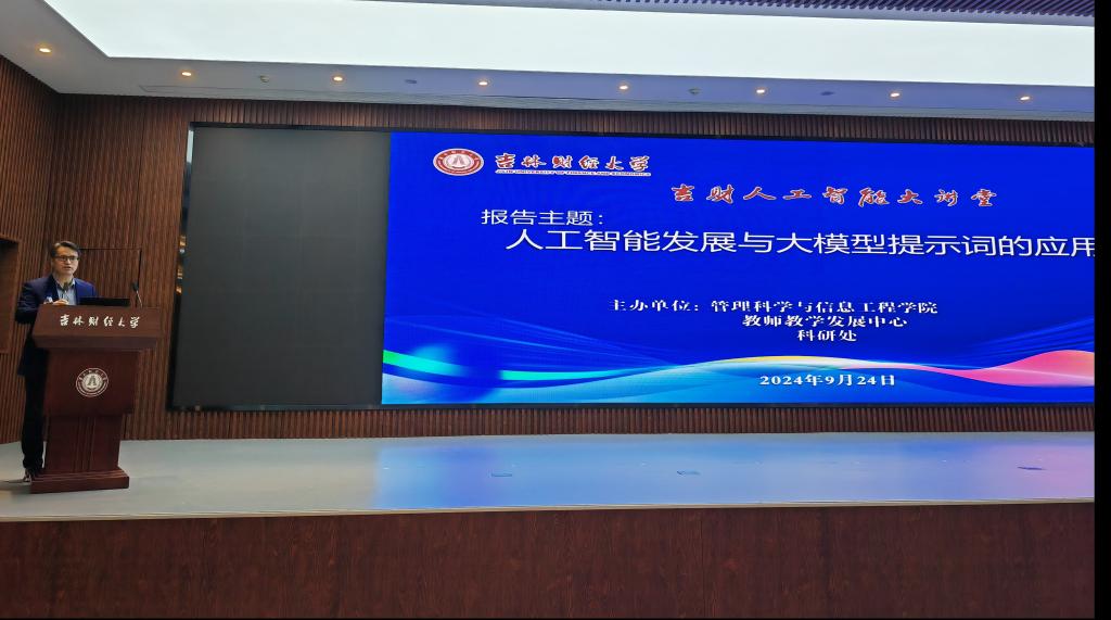 智能引领未来,模型启迪智慧。 2024年9月24日在新经济(数字经济)创新创业实训中心报告厅,成人导航 、教师教学发展中心、科研处联合举办了《人工智能发展与大模型提示词的应用》主题报告会。此次报告会是“吉财人工智能大讲堂”系列活动之一。报告会由成人导航 院长姜建华主持。 报告会上,王强为在场的师生带来了一场关于人工智能的发展与应用,传统型AI与生成型AI的区别,AI在企业中的应用与价值的精彩...