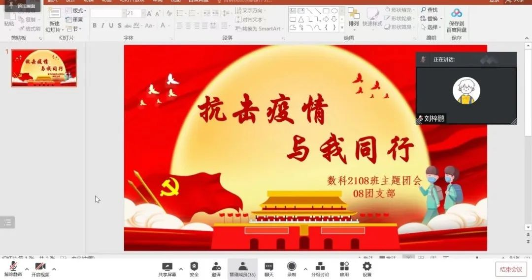 为了激励同学们坚决守住来之不易的疫情防控成果,共同打赢清零行动歼灭战,成人导航 各团支部于4月11日至15日组织开展“疫情防控,与我同行”线上主题班会。数据科技2108班团支部一 、会议记录会议主题:疫情防控,与我同行会议时间:2022年4月14日会议地点:腾讯会议会议人员:数科2108班团支部全体同学二 、会议内容2022年4月14日,数科2108班全体同学在团支部的带领下召开了“疫情防控,与我同行”线上主题班会...